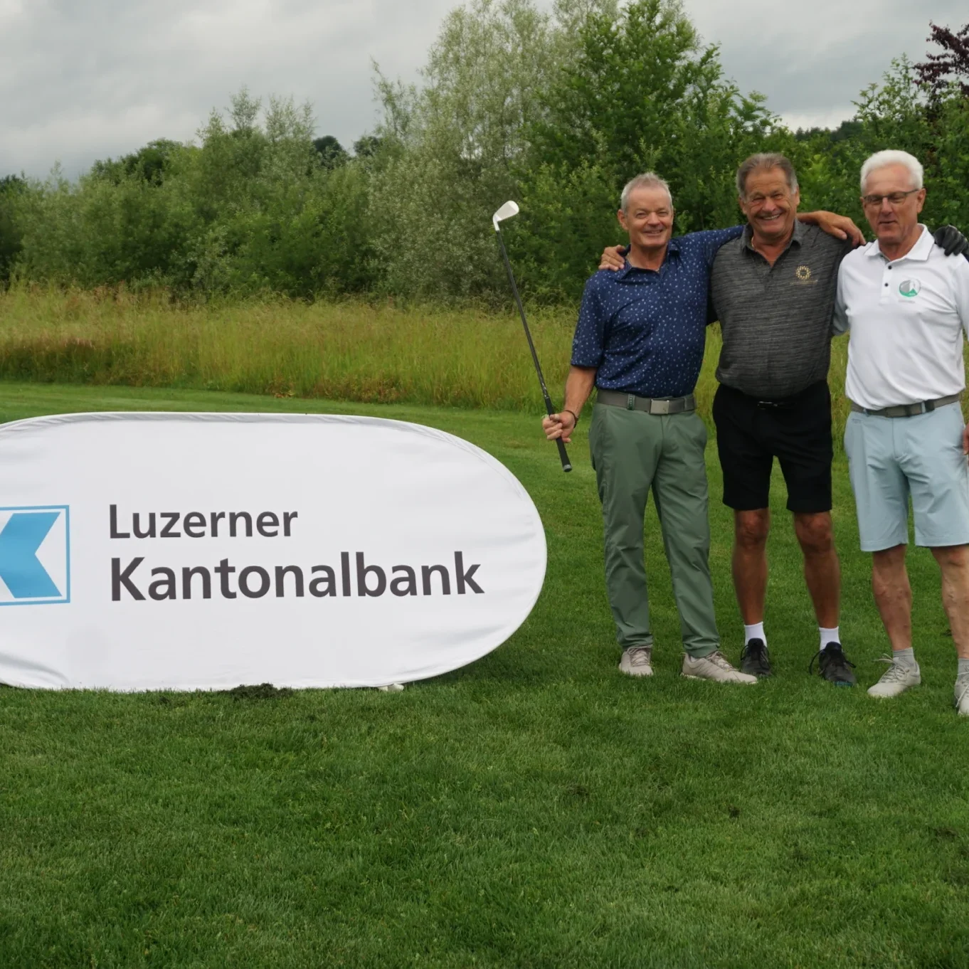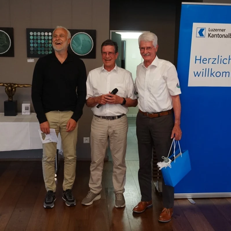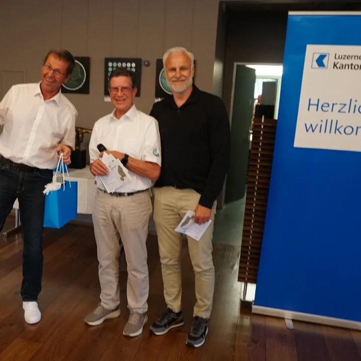 KURZINFO: Fünf blaue LUKB Bags mit wertvollem Inhalt (Trinkflache, Schwitztuch, Golfbälle etc.) wurden unter allen Turnierspielern verlost. Die Gewinner wurden von Heinz Siegrist aus den Scorekarten gezogen – mit einer Ausnahme: Joos Roland spielte das Turnier nicht handicapwirksam. Als einziger Plauschspieler erhielt er den Preis vom Turnierleiter zugesprochen.