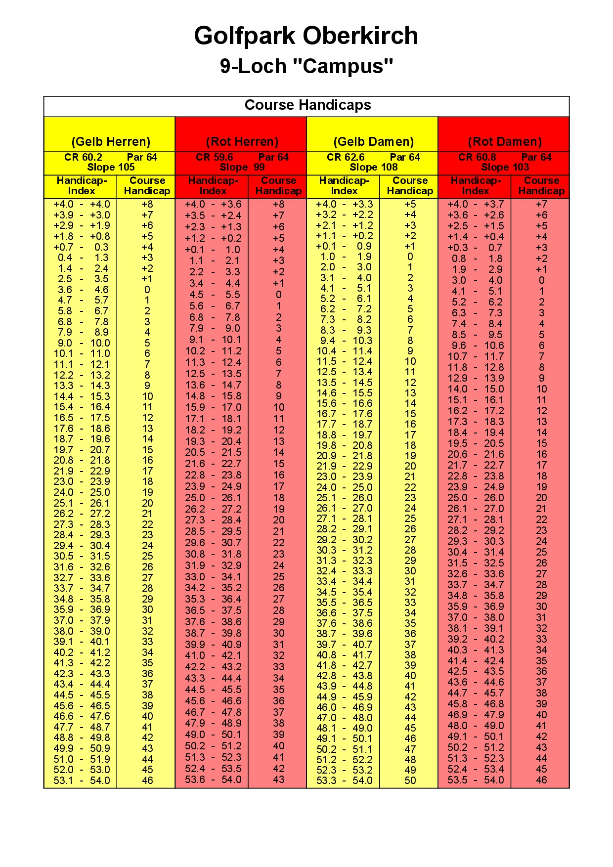 Platzinformationen, wie Rating-Tabellen, Scorecards etc.: Panorama Course | Campus Course