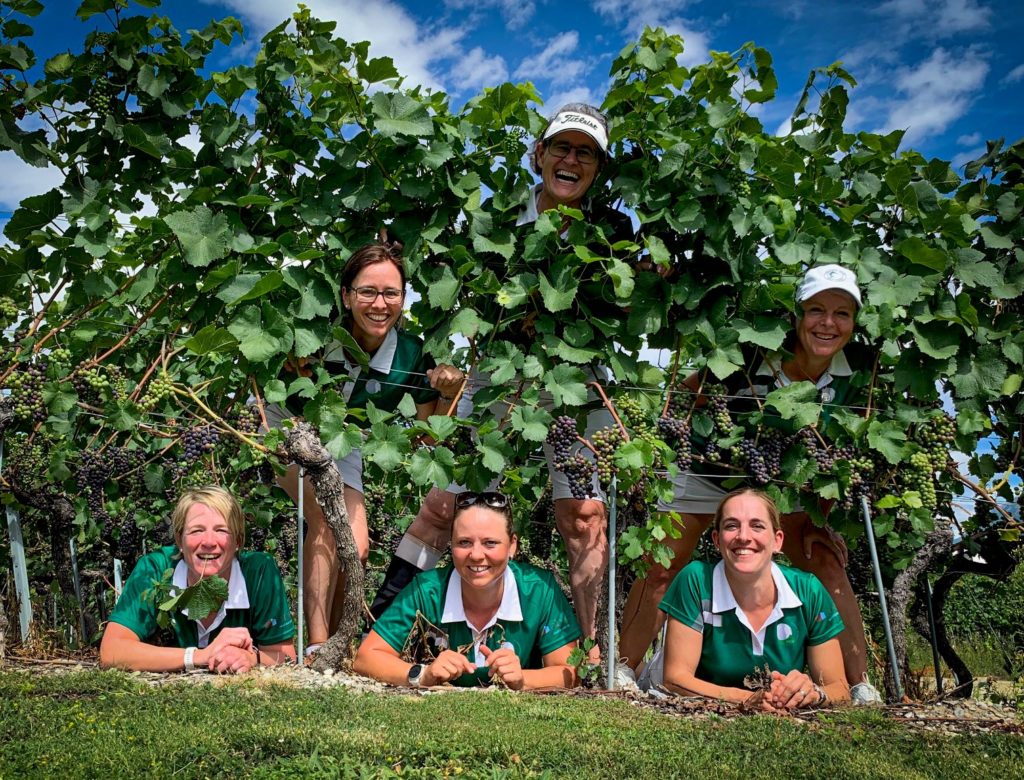 Sehr motiviert und mit doch rechten Erwartungen an uns selbst sind wir am Samstag in die Foursomes gestartet. Nicht nur die Sonne war schweisstreibend, leider auch durchwegs all unsere Scores. Aber nach der Runde ist ja bekanntlich vor der Runde. So haben wir uns am Abend nach einem erneut lustigen Foto-Shooting inmitten der Walliser Rebberge, beim gemeinsamen Nachtessen mit den anderen Teams, vieles vorgenommen und uns gegenseitig motiviert. Neue Taktiken wurden ausgelegt. Am Sonntag bei den Einzelwettkämpfen – alle fast ohne Wind – stiegen die Temperaturen ins kaum ertragbare. Schon morgens stieg das Thermometer früh über 30 Grad, am Mittag zeigte es über 35 Grad an, gefühlte 45 Grad. Jede Einzelne kämpfte um Punkte und mit sich selber. Es schien, als ob der ganze Platz nur aus Wasser und Bunker bestand. Auch die Einzel-Scores liessen zu wünschen übrig. Wir reisten am Sonntag Abend mit einem weinenden und einem lachenden Auge wieder zurück in die Innerschweiz, diesmal über Grimsel und Brünigpass. Jede Einzelne hat noch eine Rechnung offen mit diesem anspruchsvollen aber tollen Platz – wir werden zurück kehren und die 18 Loch bezwingen – vielleicht wenn das neue (noch im Bau stehende) Clubhaus eröffnet sein wird.