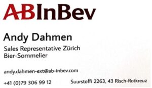 Herzlichen Dank auch an den grosszügigen Preissponsor ABInBev (Anheuser-Busch InBev, gemessen am Absatzvolumen – die größte Brauereigruppe der Welt), repräsentiert durch Andy Dahmen, Bier-Sommelier